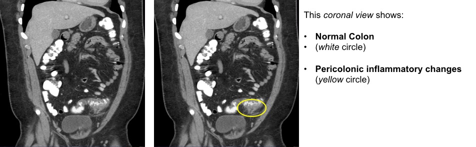 You decide to get a CT Abdomen and Pelvis with oral and intravenous contrast in the emergency room. Here’s what it shows: